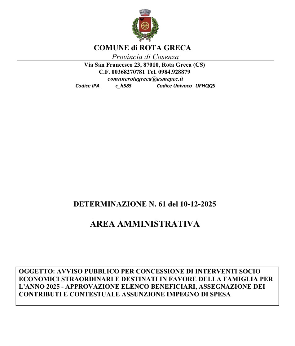 AVVISO PUBBLICO PER CONCESSIONE DI INTERVENTI SOCIO ECONOMICI STRAORDINARI E DESTINATI IN FAVORE DELLA FAMIGLIA PER L’ANNO 2025
