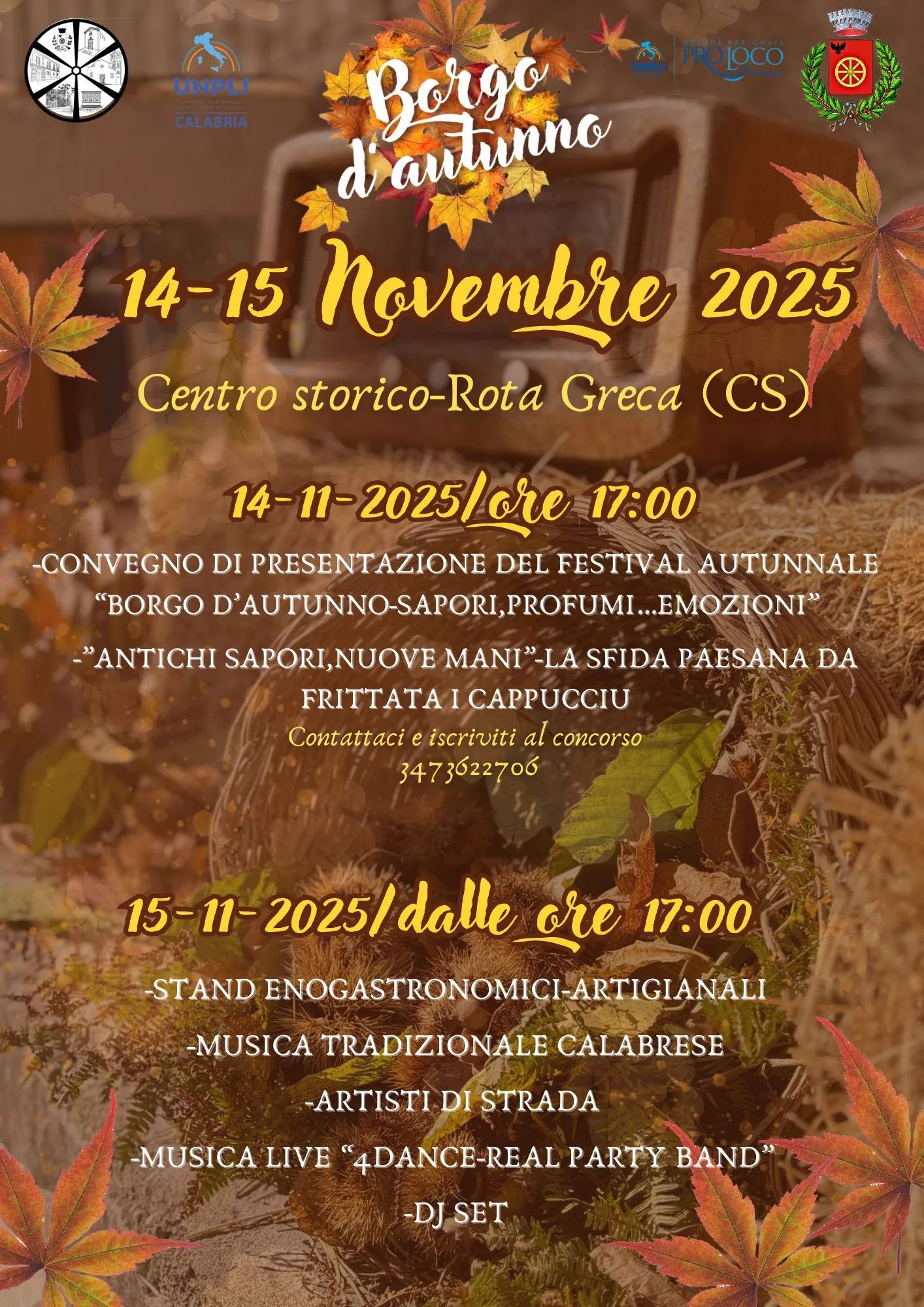 -ore 17:00 convegno di presentazione del festival autunnale “Borgo d’autunno-sapori,profumi…emozioni”.